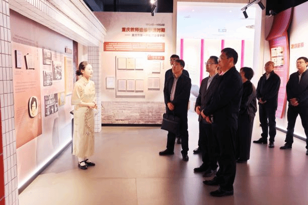 首先,考察组一行抵达重庆第二师范学院南山校区校史馆,在相关负责人的引导下,详细听取了该校办学历程、学科演进、特色发展等方面的情况介绍,深入了解其在不同发展阶段的办学理念与建设成就,考察组对该校深厚的办学底蕴和鲜明的办学特色给予高度评价。