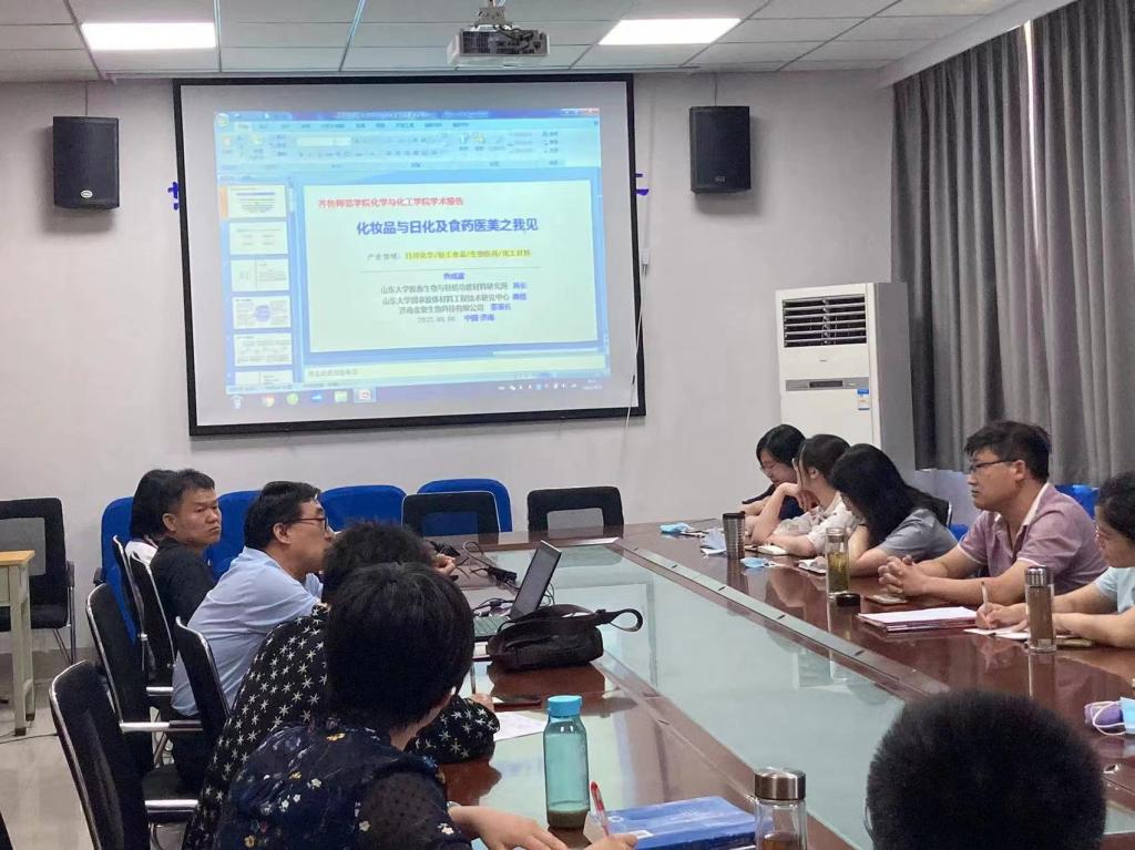 2022年6月6日9点,我院特邀山东大学国家胶体材料工程技术研究中心曹成波教授,曹教授以《化妆品与日化及食药医美之我见》为题做报告。曹晓荣院长,各教研室主任和化妆品中心人员参加了此次报告会。