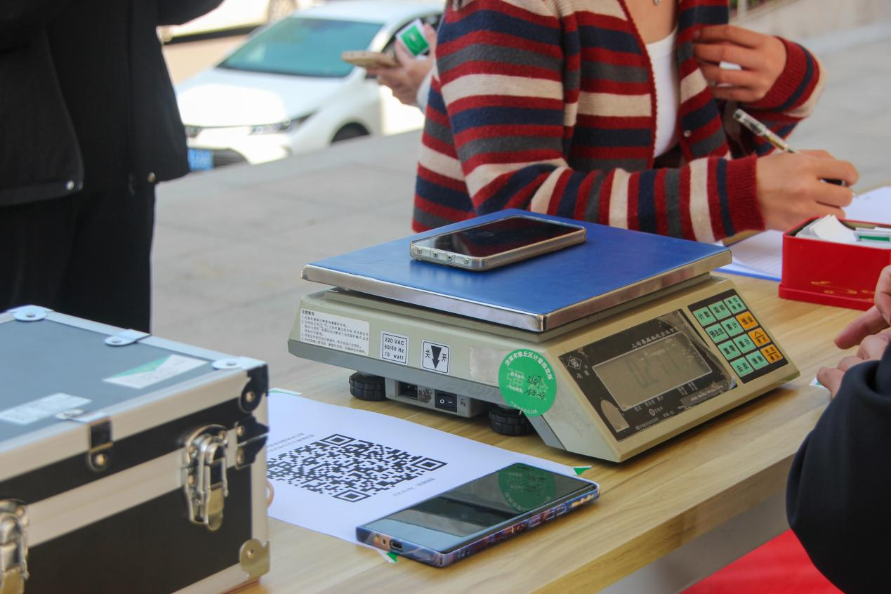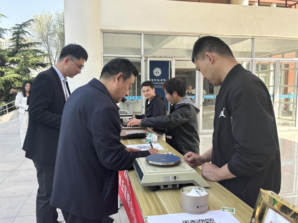 随后,参会人员一行移步至二号实验楼走廊进行的“手机变砝码,巧辨黑心秤”的活动现场。工作人员严谨细致地操作着经法定机构检验合格的标准电子秤,为每一位师生的手机进行了精准称重,并逐一加贴了防作弊重量标识,确保了活动的公正性与权威性。活动现场秩序井然,在专业人员的悉心指导下,师生详细了解、积极学习,掌握了一系列实用的维权技能。同学们纷纷表示,此次实践活动内容丰富、形式新颖,让他们深刻认识到规范计量对于维护市场公平的重要性,切实增强了自身的维权意识和能力。