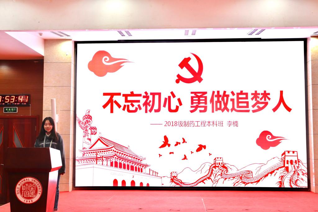 紧接着,入党积极分子李楠发表了“不忘初心,勇做追梦人”的演讲。她借助习近平总书记对新时代青年提出的六个要求,坚定自信地表达了对待入党的决心和态度。