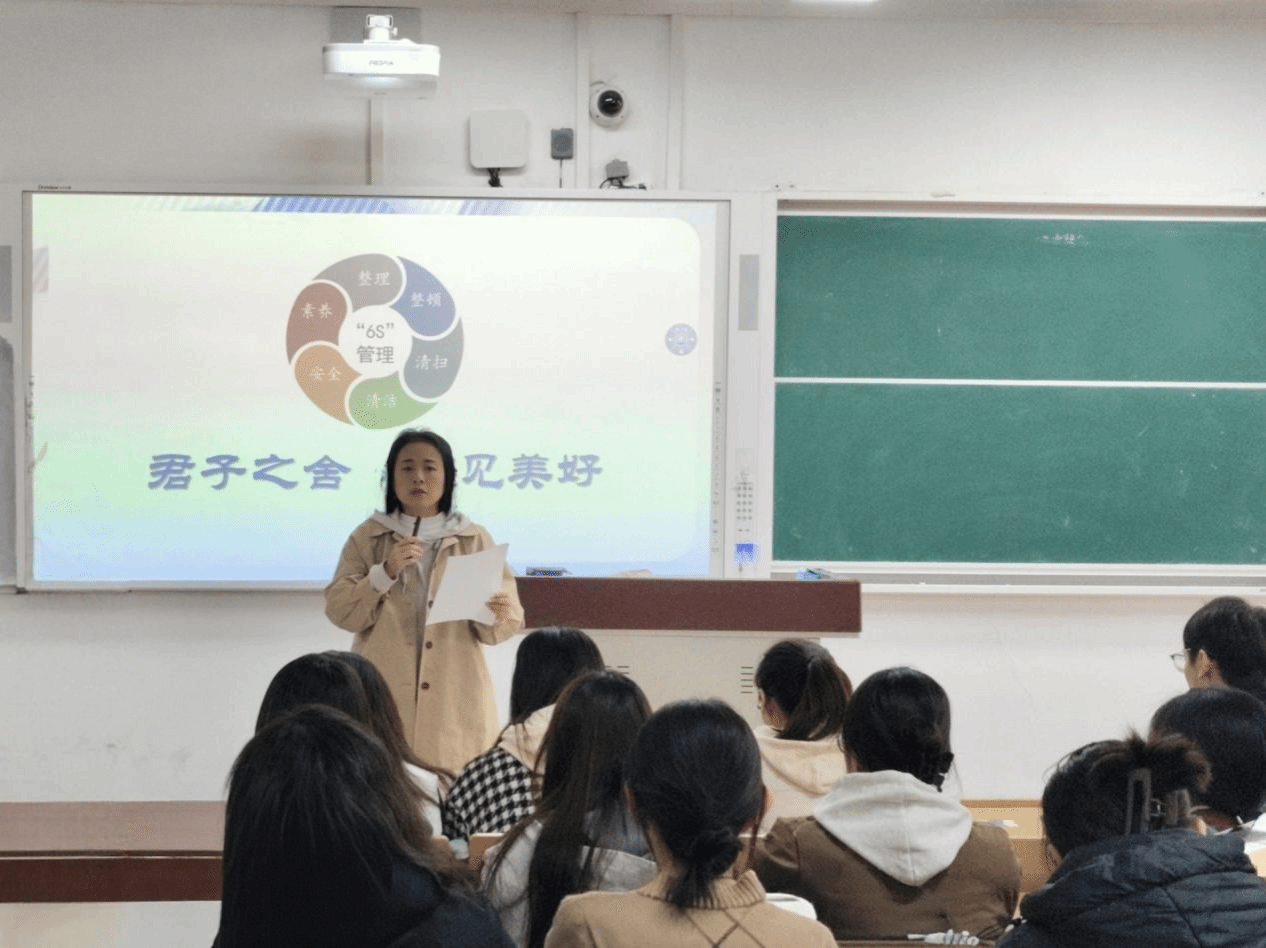 王鲁豫介绍了学校及学院本学期以来在公寓管理方面的重点工作,并对近期出现的一些问题,提出了加强公寓管理的具体做法,希望同学们自觉遵守规定,养成良好的行为习惯,展现大学生积极向上的生活追求和精神风貌。他结合前两届“6S”宿舍评选活动的重要成效,着重介绍了本次活动的特色与亮点,鼓励大家积极参与进来,共同赢得荣誉和收获。宿管部负责人张琪琪对各项系列活动的具体内容、评选细则及奖项设置等作了详细介绍。