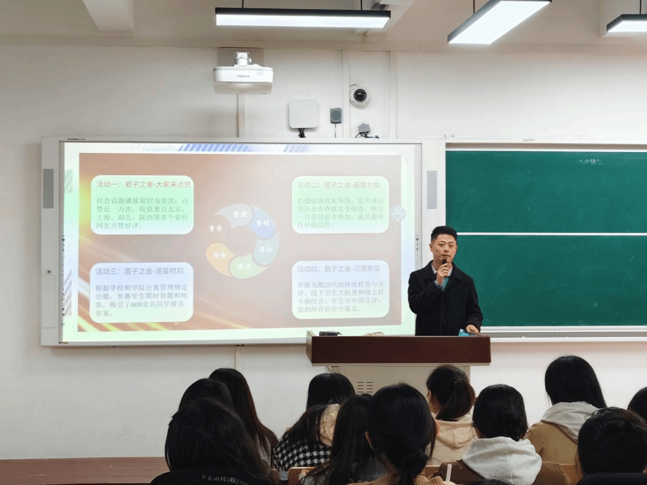 为提升公寓服务管理水平,助力学生养成良好的生活卫生习惯,携手打造干净整洁、安全和谐的宿舍环境,实现公寓育人的重要功能,10月21日,学院在一号教学楼举行加强公寓管理工作推进会暨“君子之舍·寓见美好”第三届“6S”宿舍评选活动启动会,学院党委副书记梅茹、团总支书记杨睿及全体辅导员出席,学生会宿管部、各班生活委员及宿舍舍长参会。