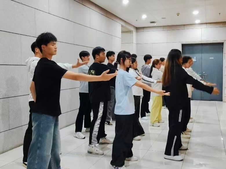 活动筹备阶段,学生们对舞蹈动作进行了严苛的打磨,从编舞创作、节奏把控,到复杂的队形推演、情感张力的塑造,大家全程紧随老师的指导,对每一个动作细节进行反复雕琢——手臂扬起的弧度、脚步落定的力度、转身衔接的丝滑度,即便细微至表情的分寸感,亦追求精准无差。针对部分高难度舞蹈片段,学子们自发分组拆解训练,相互勘正动作偏差,分享发力的精妙技巧,在“练-改-磨”的闭环中实现整体呈现效果的螺旋式提升。