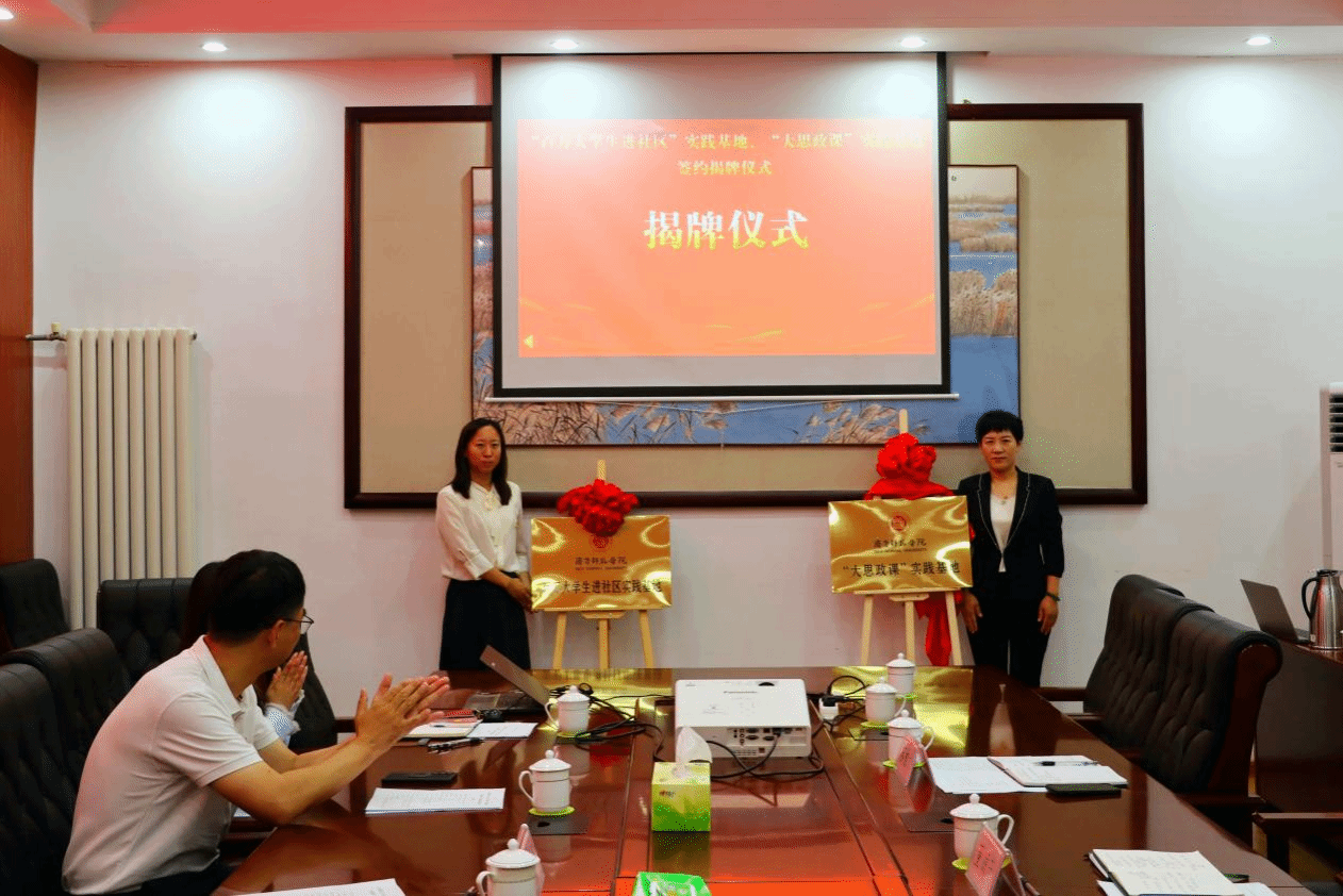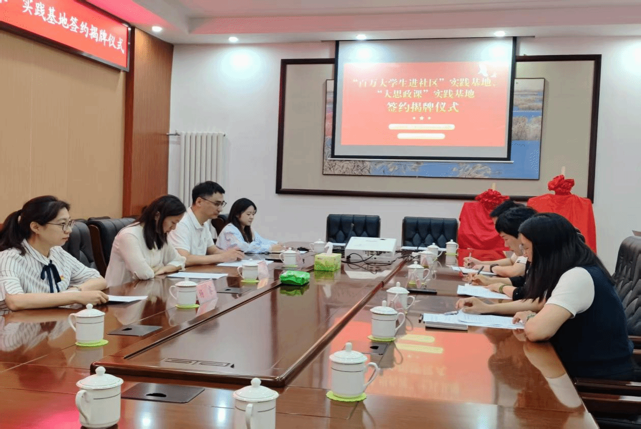 在双方人员的共同见证下,杨睿与董丽芳签署“百万大学生进社区”实践基地、“大思政课”实践基地合作协议。杜娟与董丽芳为“百万大学生进社区”实践基地、“大思政课”实践基地揭牌。