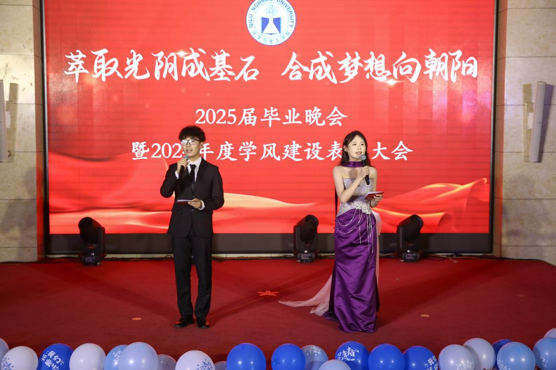 2025年6月5日晚,学院“萃取光阴成基石,合成梦想向朝阳”毕业晚会暨2024年度学风建设表彰大会在章丘校区第一学术报告厅隆重举行,学院党政班子成员,全体辅导员,受表彰的指导老师与学生代表,2025届全体毕业生参加。