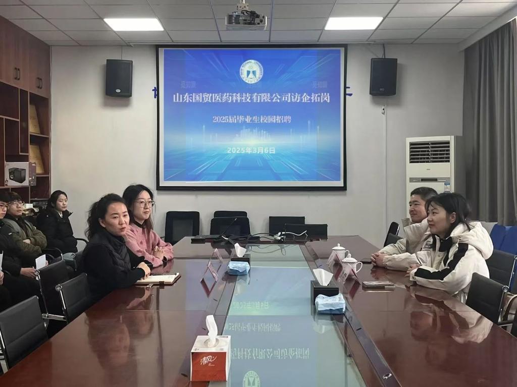 2025年3月6日,学院在2号实验楼B310会议室举行专场招聘宣讲,副院长张旭雪、辅导员董坤,山东国茂医药科技有限公司(上海理想制药有限公司青岛研发中心)董事长董桂秀、总经理盛彦君出席,2025届毕业生参加。