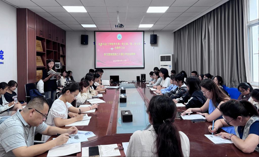 为深入学习贯彻党的二十届三中全会精神,9月12日下午,学院学生第一党支部、学生第二党支部在学院会议室开展专题学习会,学生第一党支部书记董坤、第二党支部书记杨睿、辅导员王海涛、全体学生党员参加本次会议,党委副书记梅茹列席参会。会议由杨睿主持。