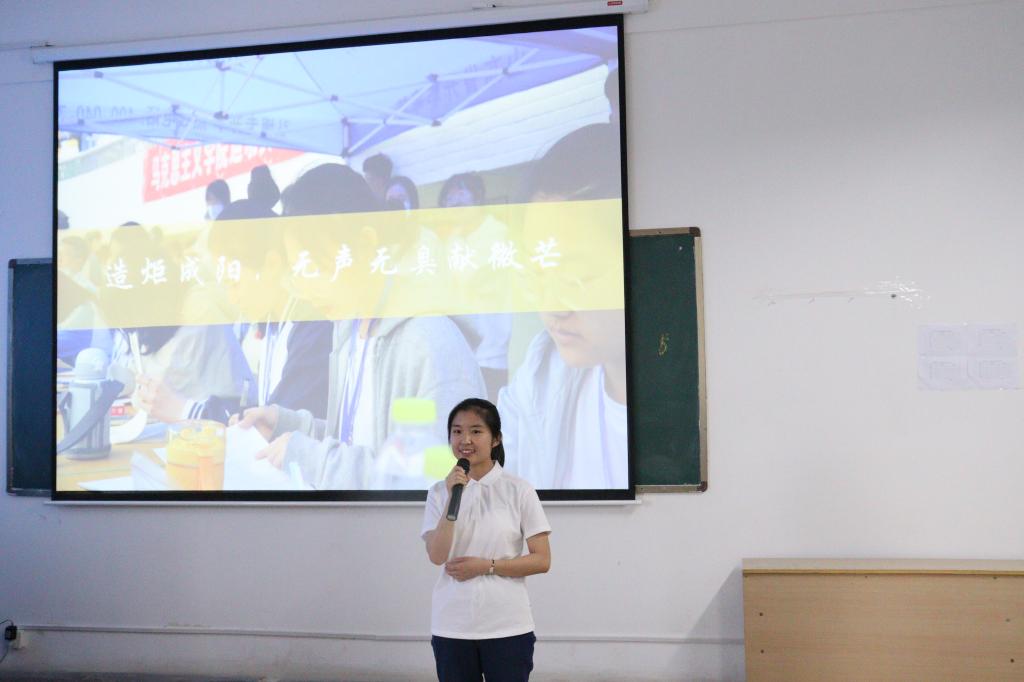 造炬正阳,无声无臭献微茫。无怨无悔、做好本职工作,张希龙提炼了幕后工作成员默默付出的精神品质;尽职尽责、精准服务运动员,孙丽华成为运动员们最坚固、最可靠的后盾;坚守看台、见证每一个耀眼的成绩,王晨雨带领观众一起为运动员们呐喊助威;奋笔疾书、用文字传递能量,孔芮通过加油稿让全场听到化院的声音;跨越时间、定格精彩瞬间,王晨讲述新媒体用镜头和推文记录赛场上的点滴温暖。