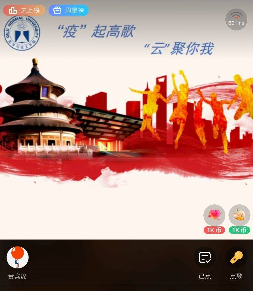 为丰富我院师生的精神世界,展现师生抗击疫情的精神风貌和面对疫情乐观的心态,5月5日晚19:00,我院 “‘疫’起高歌,云聚你我”线上文艺活动在“全民K歌”APP直播房间热烈举行,本次比赛邀请我院巩磊老师、杨睿老师及4名学生代表担当评委,经过初赛选拔出的10个选手(或组合)为足不出户的师生们献上一场听觉盛宴。