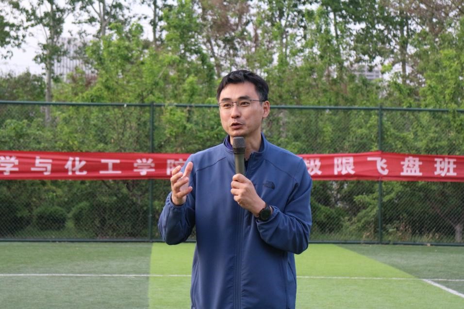颁奖结束后,学院党总支副书记巩磊对此次活动进行闭幕致辞。首先,他对取得优异成绩的参赛队伍表示热烈的祝贺,向积极参与本次比赛的各个队伍、成员和全体工作人员表示衷心的感谢。他强调,开展飞盘比赛是对习近平总书记关于教育和体育的重要论述及系列讲话精神的全面贯彻落实,对于全面贯彻党的教育方针、努力提高学生体质健康水平具有重要意义。他指出,通过本次比赛的开展,有意识地培养了学生团队协作的精神、坚守位置的责任、遵守规则的意识、快乐共享的情感、积极向上的人格和百折不挠的意志。