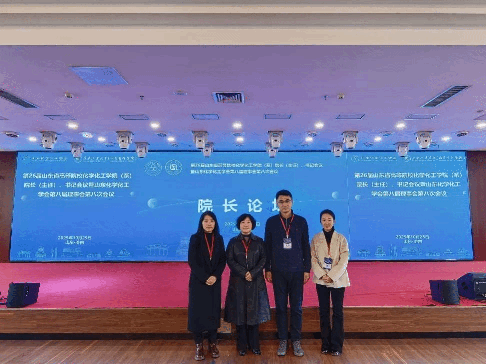 10月25日,第26届山东省高等院校学院(系)院长(主任)、书记会议暨山东化学化工学会第八届理事会第八次会议在济南召开。学院党委书记巩磊、院长曹晓荣、副院长张旭雪、张艳应邀参加了本次高水平学术盛会。