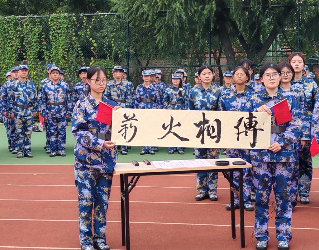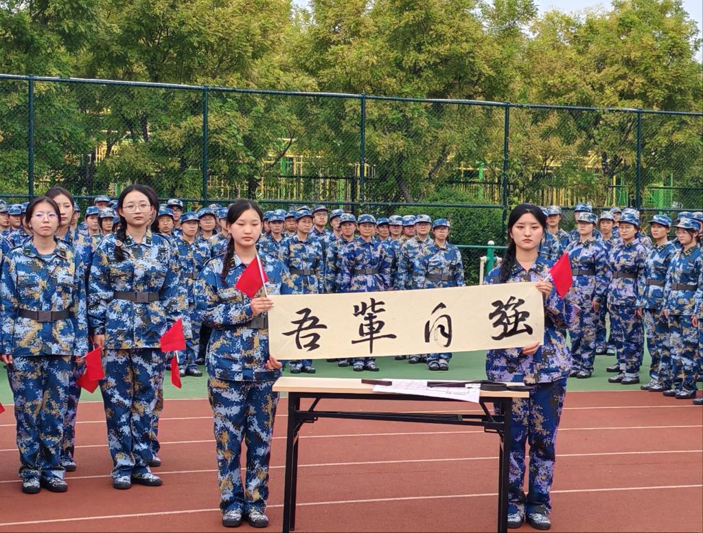 9月18日下午,学院2025级全体新生身着军训服在学校操场排列站齐,《勿忘九一八》的朗诵声再次响起,在一声声呐喊中,全体新生铭记历史,缅怀先烈。强国必须强军!全体学生合唱《强军战歌》,激昂雄壮,感受到了国防和军队现代化的辉煌成就,更加深刻理解了建设一支听党指挥、能打胜仗、作风优良的强军目标。2025级新生代表挥笔写下“薪火相传,吾辈自强”八个大字,表达了新时代青年,在以中国式现代化实现中华民族伟大复兴的新征程上,勇担历史使命,奋发图强的铮铮誓言。