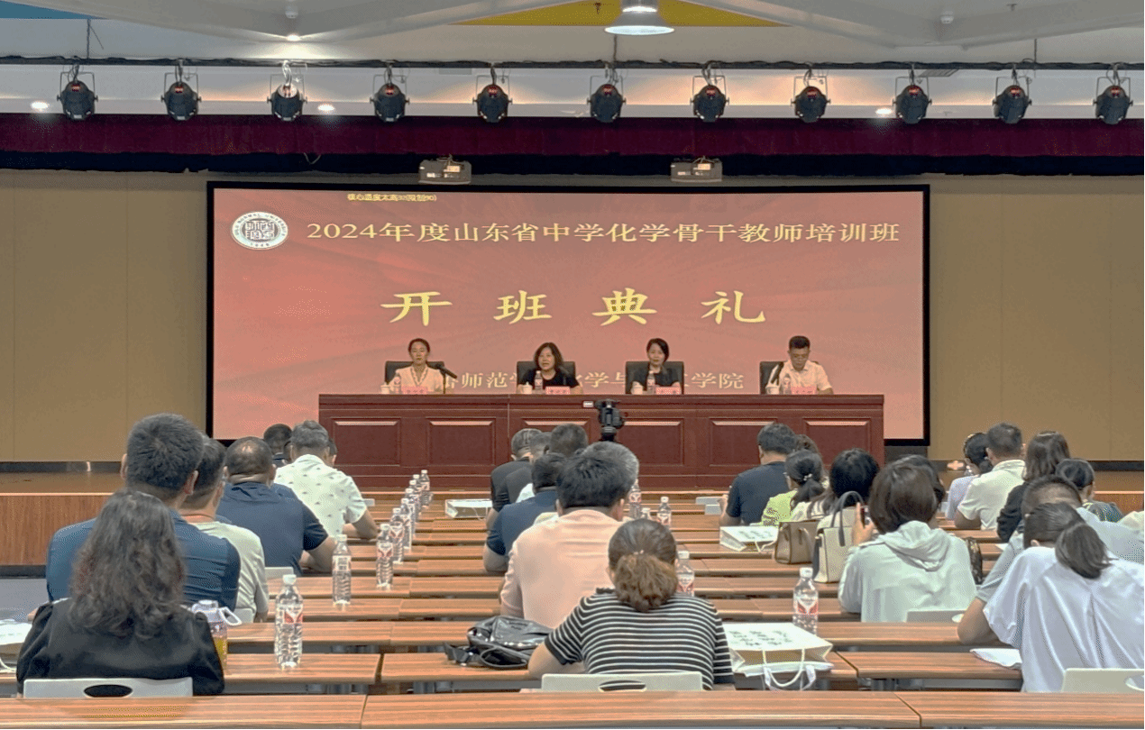 为进一步深化师德师风建设,加强教学基本功训练,全面提升教师在德育、课堂教学、实验操作等方面的执教能力和专业素养,推动我省中学化学教育的持续健康发展,8月14日下午,由永利y23455承办的2024年山东省中学化学骨干教师培训班在济南开班。学院院长曹晓荣、培训班首席专家卢巍以及省内众多中学的化学骨干教师齐聚一堂。开班典礼由学院副院长张旭雪主持。