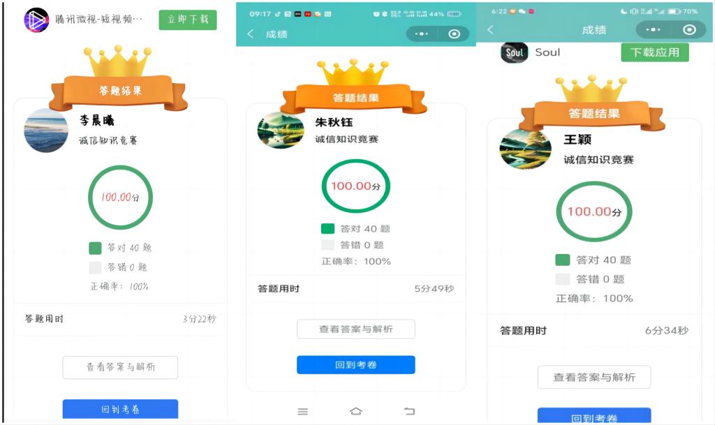 活动前期,学院在“线上活动王”小程序中上传相关题目形成题库。同学们积极学习金融、征信、国家助学贷款等相关知识,为线上答题做好充分准备。活动期间,全体学生主动扫码参与,积极争取在此次答题中取得优异成绩,真正让诚信意识内化于心,外化于行。