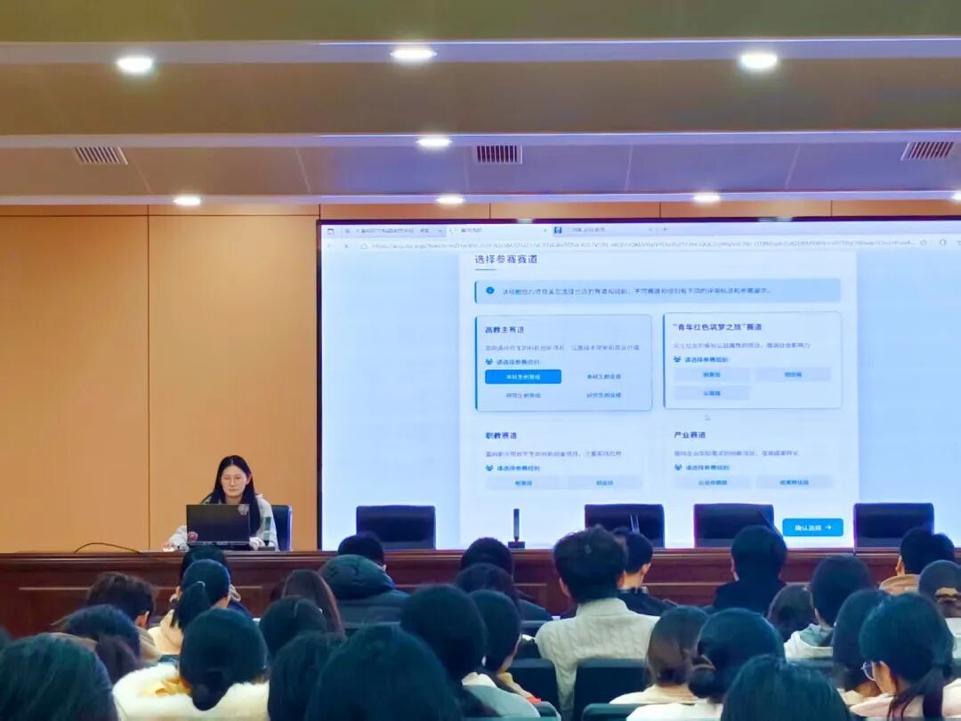 最后,2024级制药工程一班秦留洋现场演示了图书馆创新创业资源平台的使用以及“三创赛”报名系统的操作流程。