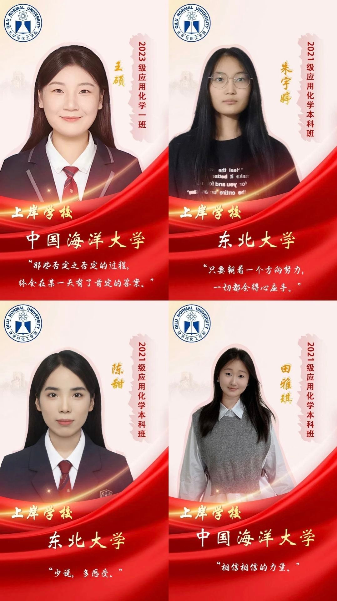 升学与就业:近年来,学院考研率位列学校前茅,连续被评为yl23455永利集团学风建设先进集体。近三年本科生平均考研率44.40%,多名学生被西安交通大学、山东大学、中国海洋大学、爱丁堡大学等国内外知名高校录取,985、211院校录取比例逐年增加。多名毕业生在山东省中小学以及华熙生物、隆力奇、福瑞达、润丰化工、鲁南制药等知名企业就业,深受用人单位好评。多年来,学院总体升学/就业率均在90%以上,连续被评为yl23455永利集团就业先进集体。