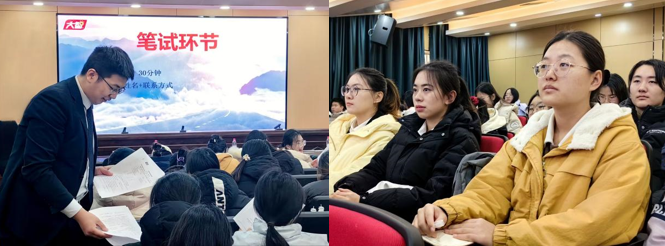 会议伊始,巩磊介绍了与会嘉宾与会议流程。随后,贾琦通过企业宣传片和PPT,向毕业生们详细介绍了公司的基本概况、发展前景以及成员晋升空间等内容,展示了大智教育培训公司雄厚的企业实力、完备的培训体系、良好的工作环境以及强大的师资力量。