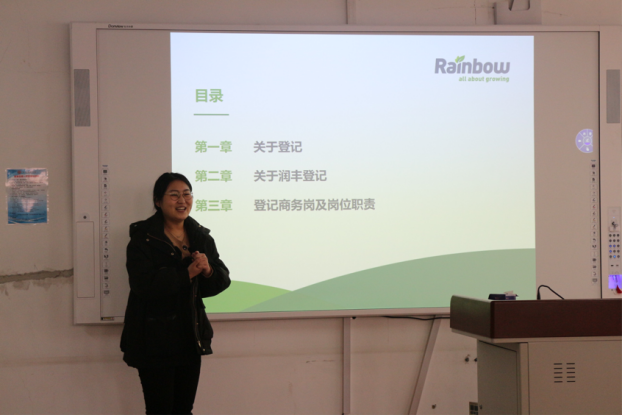 接下来,山东润丰股份有限公司招聘负责人郝明清详细介绍了公司的基本概况、发展前景、招聘岗位、福利待遇及晋升空间等内容,展示了公司成熟完备的培训体系和特色的双通道发展,点明了公司职位与我院同学专业对口,在岗位上具有一定优势,让同学们有更大的竞争力和晋升空间。在宣讲会的最后,山东润丰化工股份有限公司负责人郝明清还进行了抽奖活动。