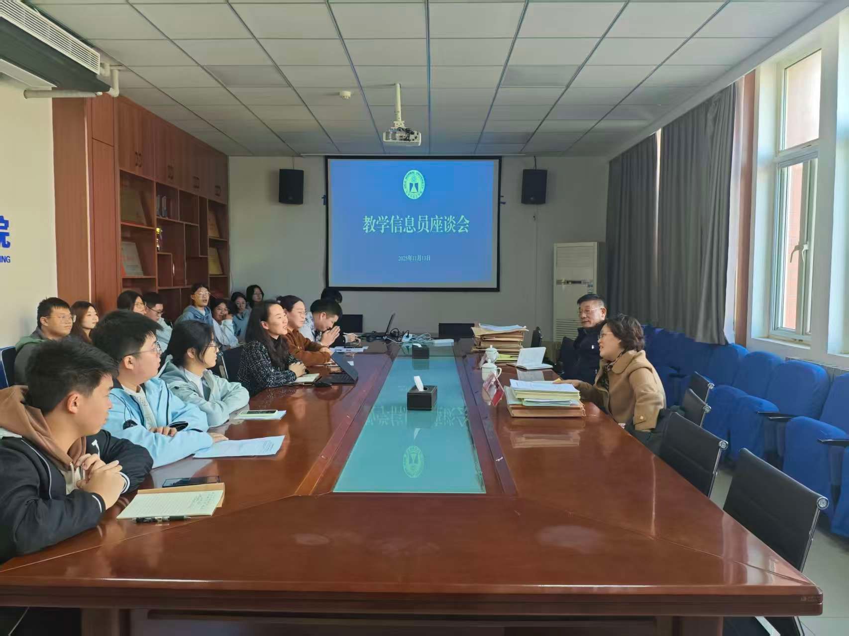 为深化教育教学改革,畅通教学信息反馈渠道,11月13日,学院在会议室召开2025-2026学年第一学期教学信息员座谈会。校级督导张传林、石竹受邀出席,学院副院长张旭雪、教学秘书梁永鑫及各班教学信息员参加会议,会议由张旭雪主持。